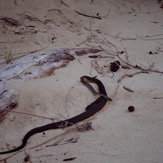 Nagu Austraalia on Tasmaaniagi kuulus madude rohkuse poolest, kuid õnneks töötas hästi vanaemade tarkus, et madude elualal tasub jalgadega igal sammul natuke trampida. Kõik kümmekond kohtumist lõppesid rahulikult ja rõõmustav oli avastus viimasel matkapäeval, et maod jahivad üksteist sest leidsime suure musta mao, kes isukalt väiksemat madu seedis, kui neelatav veel edasi toimetas.